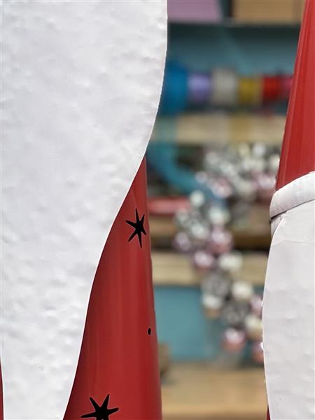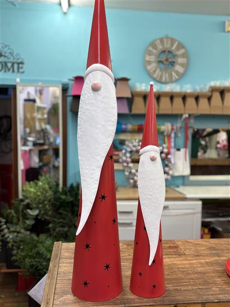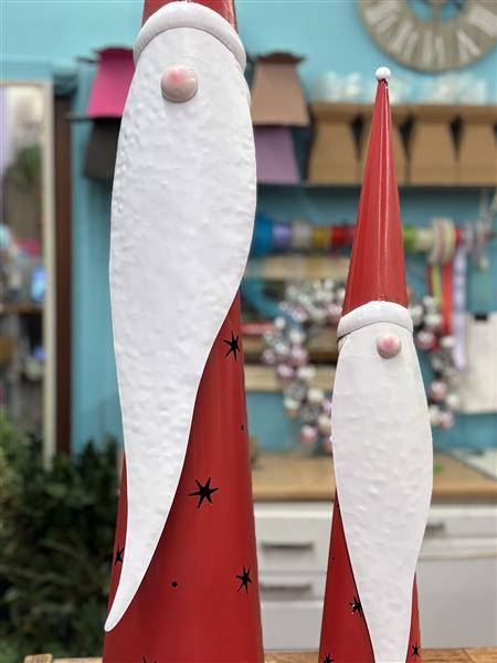The tall Santa stands at 118cm, while the smaller companion measures 79cm. A perfectly balanced duo that looks stunning on entry tables, beside the tree or as a captivating statement piece in any room. Made from lacquered iron in festive red and white - a perfect gift for anyone who likes quirky decor.