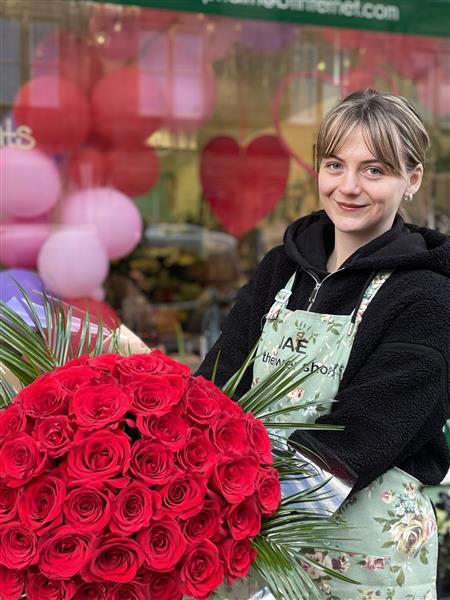 A breathtaking bouquet of 50 premium roses, expertly hand tied to create a bold and unforgettable statement of love. Rich in colour and beautifully arranged for impact, this luxurious bouquet is finished with elegant presentation and designed to leave a lasting impression - the ultimate romantic gesture for life's most meaningful moments.