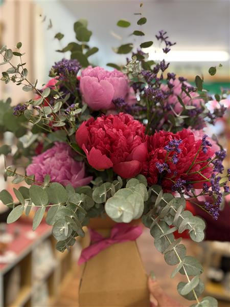 Romantic peonies - the epitome of elegance and timeless beauty. Each bloom is carefully selected for it's soft, full petals and delicate fragrance creating a harmonious blend of textures and shades. Perfect for the bride who wants a classic, dreamy look. This bouquet evokes romance, grace and the joy of new beginnings.